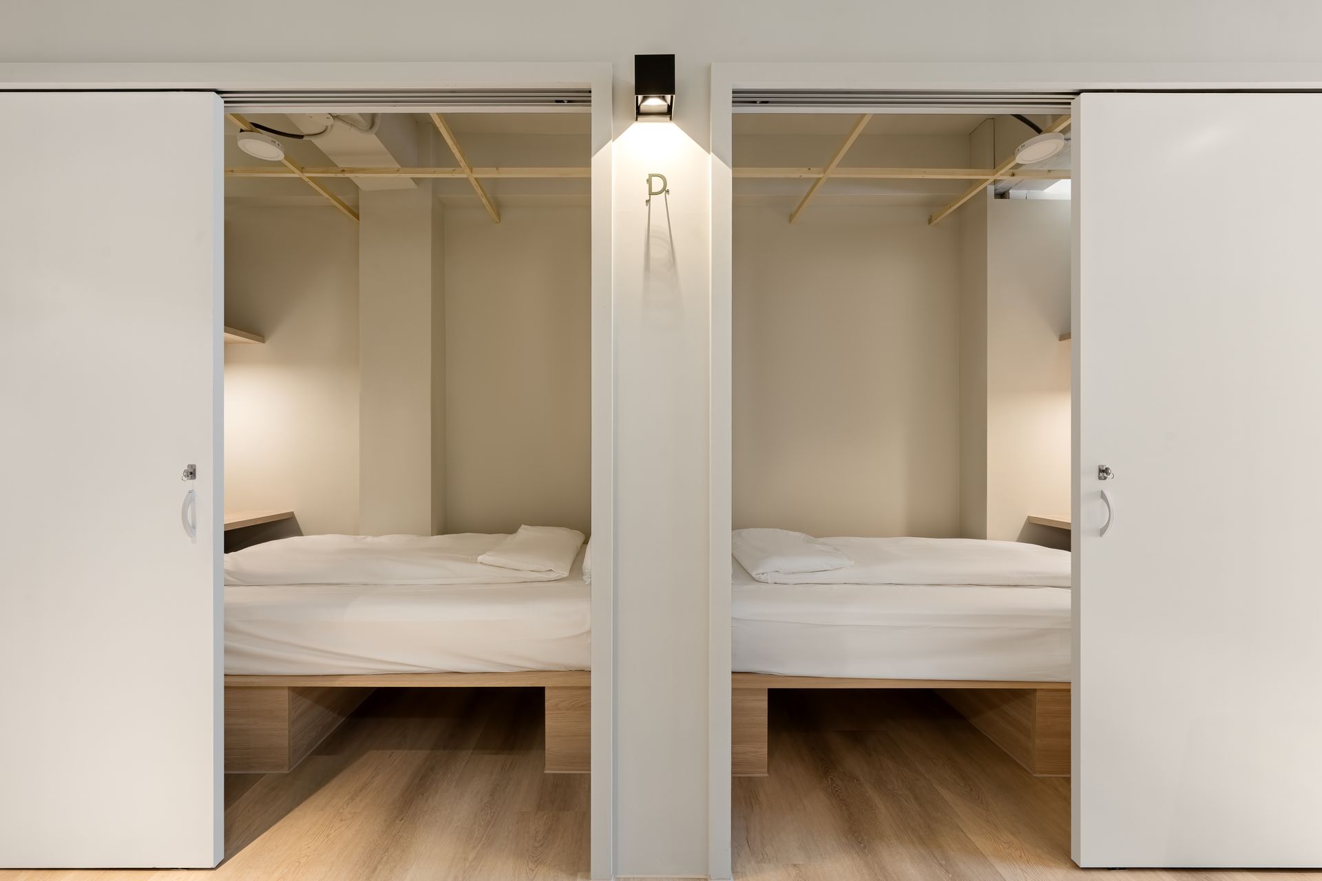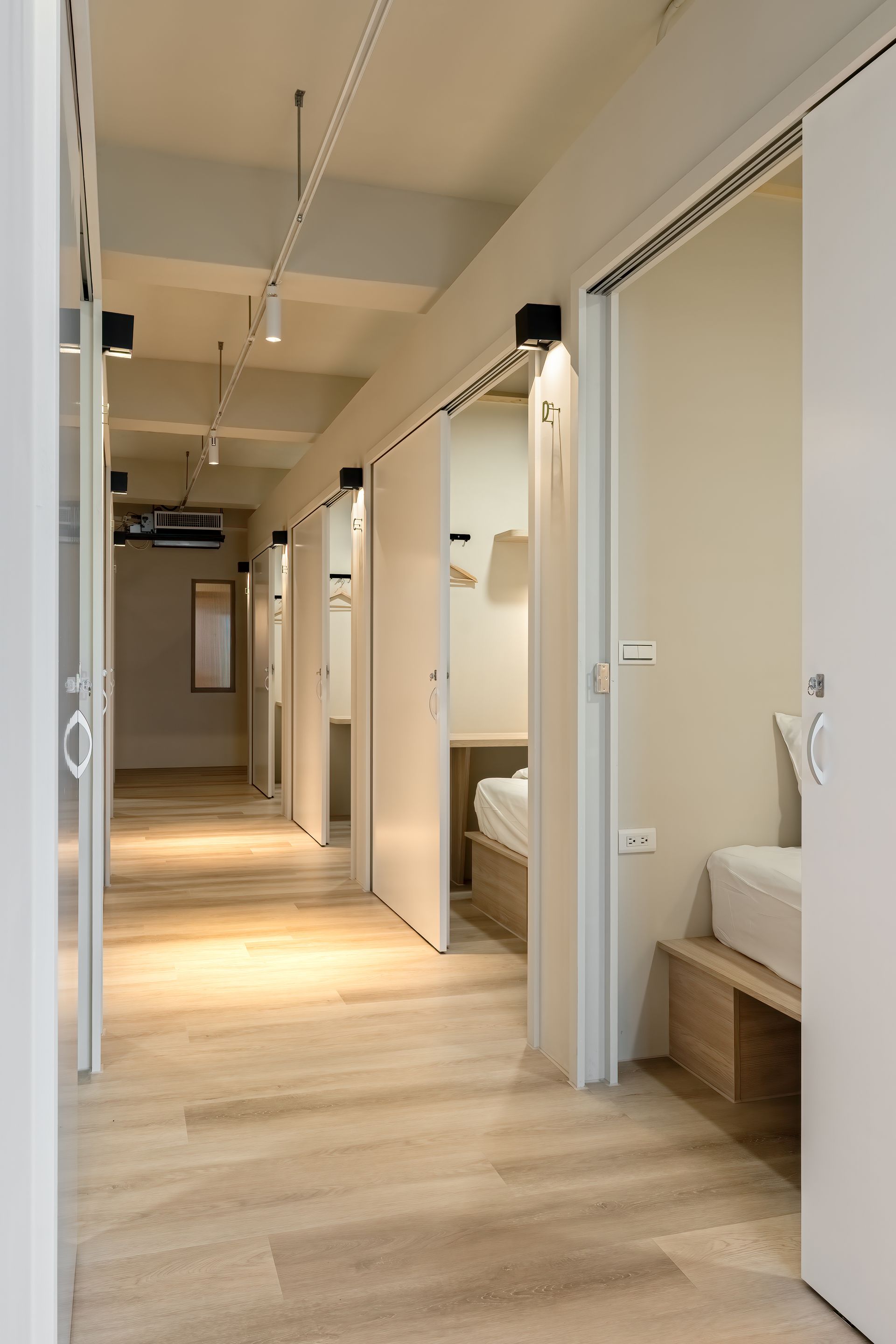 我們的混和宿舍(背包房)有別於坊間僅以窗簾區隔的上下舖設計,提米好旅混和宿舍提供旅人單人「房」而非單人「床」,不僅讓宿舍房旅人擁有獨立空間、有拉門可上鎖,房內還設有木質桌與檯燈,讓您方便使用筆記型電腦、放置個人物品,還有專屬掛衣處,可說是性價比相當高的選擇。