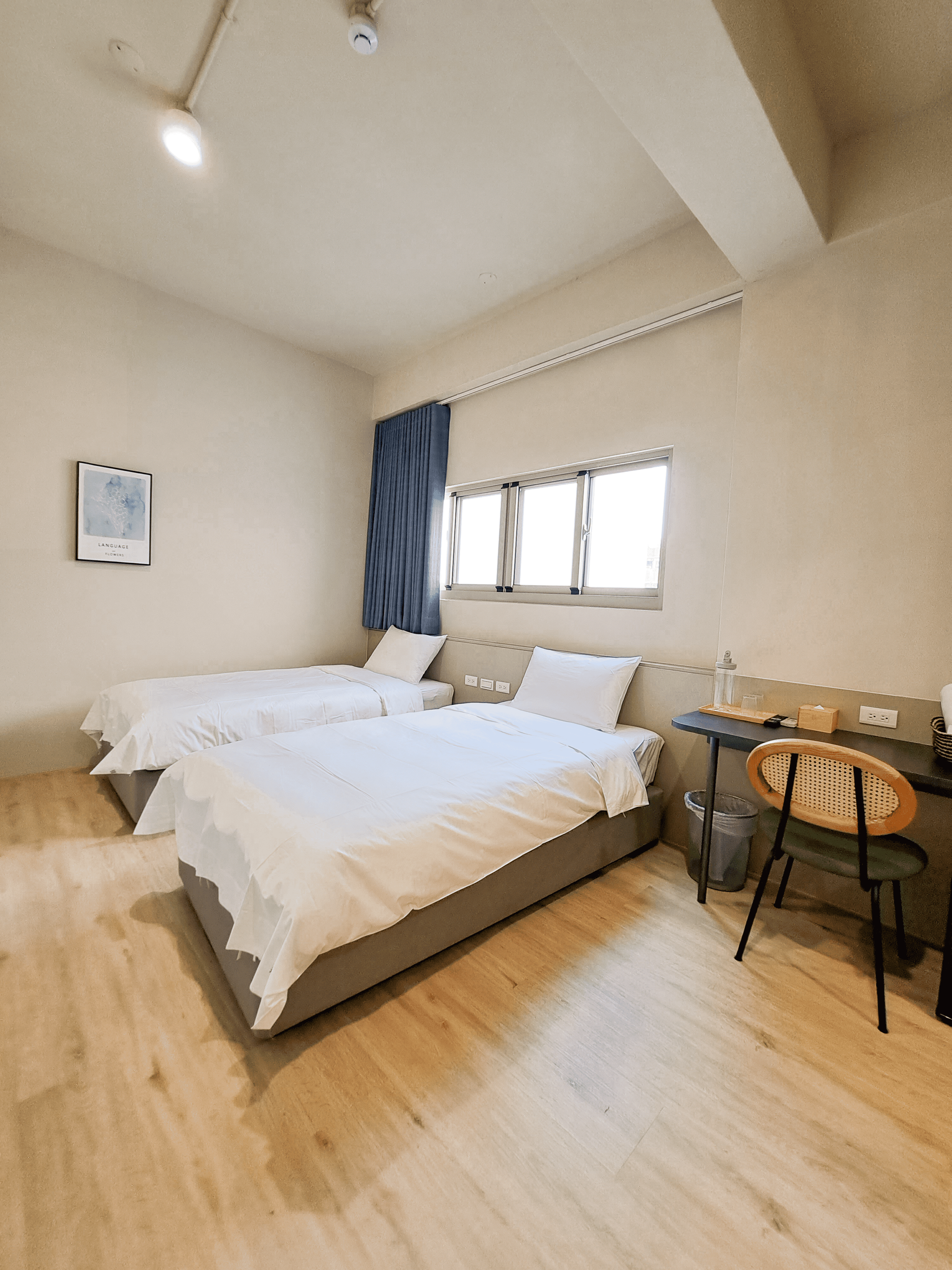 有人陪伴又能自在安睡,不怕翻身驚動身邊人,就是個超舒服的好窩!我們的雙床套房有對外窗,即使房內有兩張單人床、一套書桌椅,依然能享有舒適好伸展的空間。木質調地板與家具,讓無論男生女生進入房間,心瞬間沉靜了下來,願旅人好好享受這一晚。